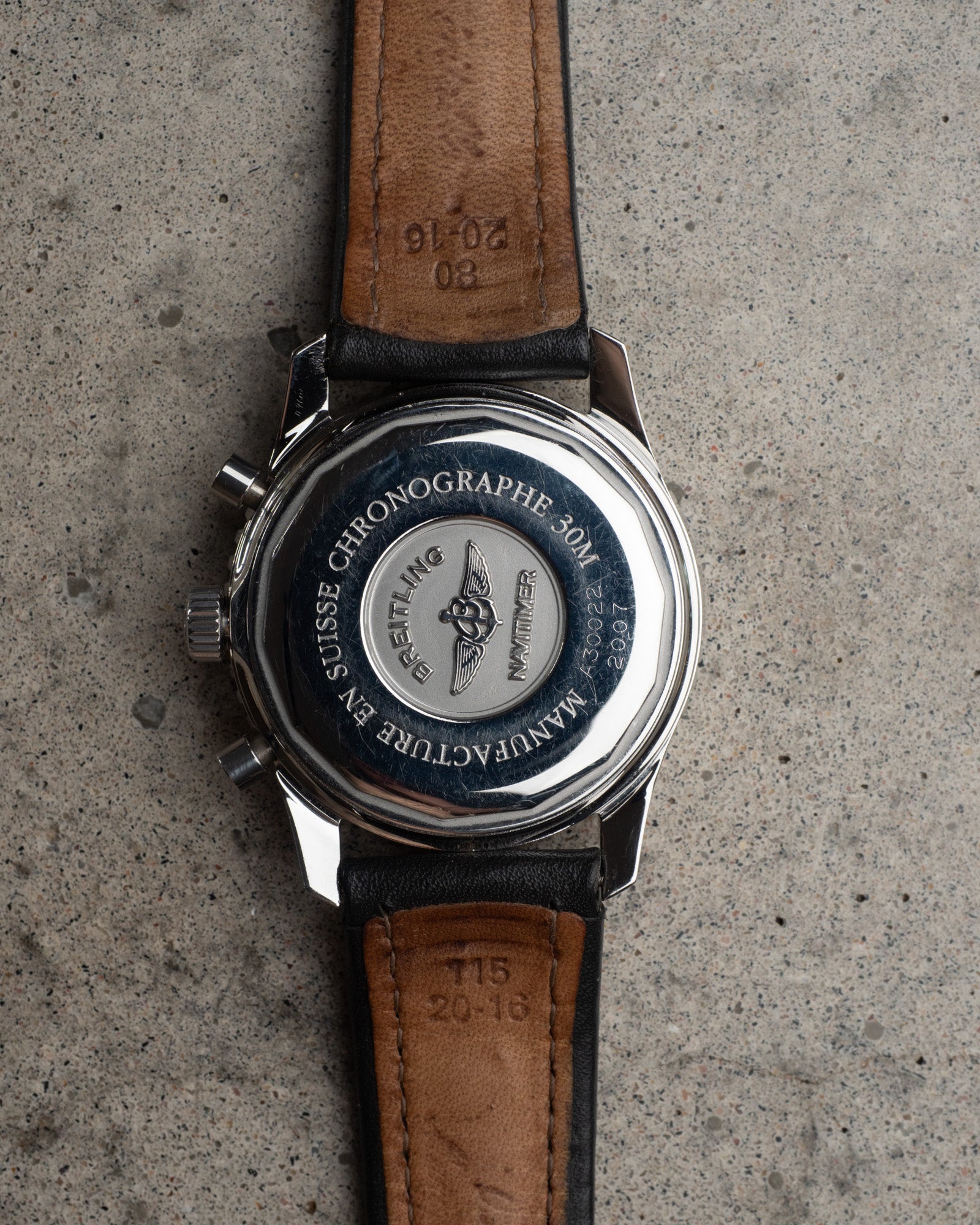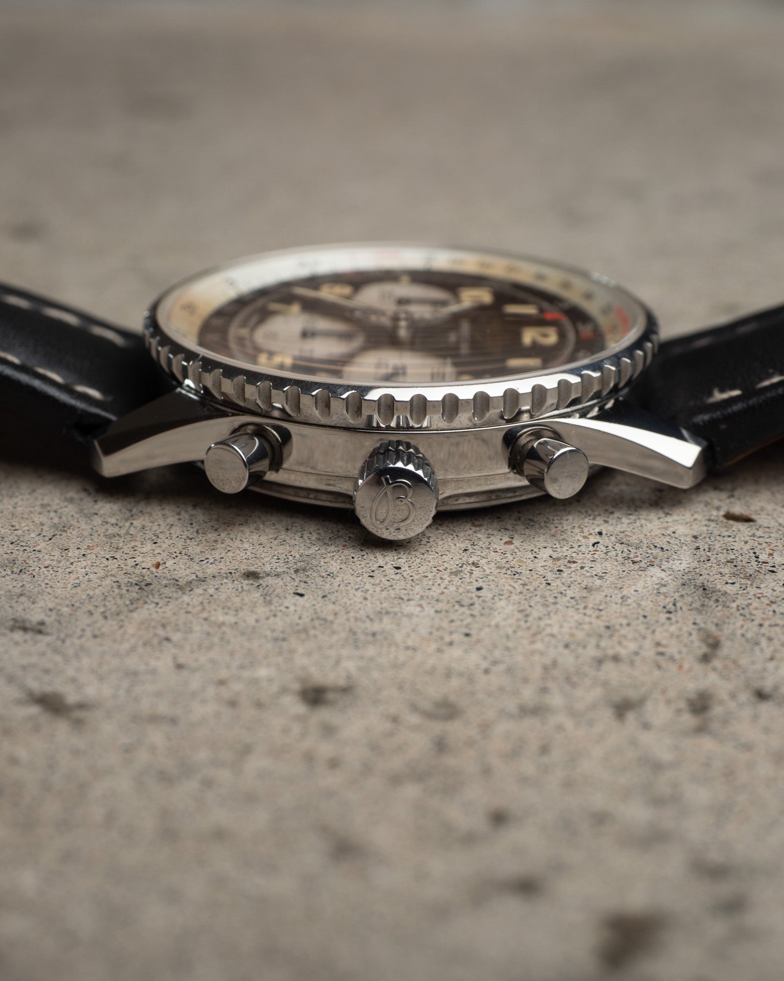 Bracelet/Strap: Original black calf leather strap with Breitling buckle